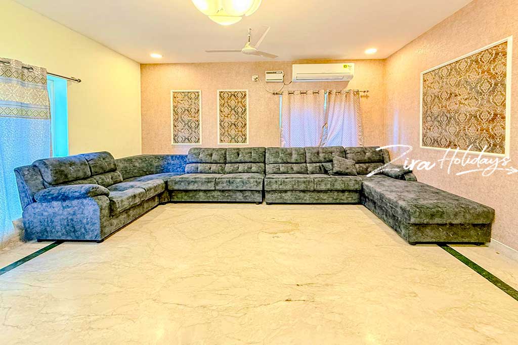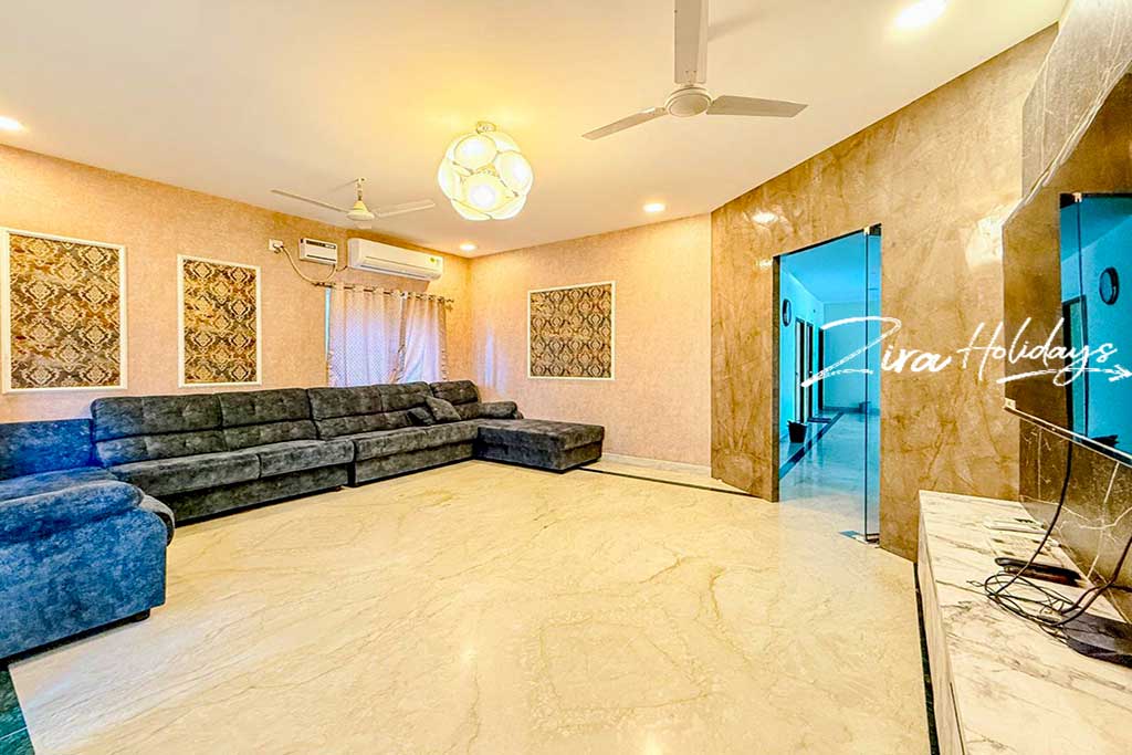 •  Luxury Amenities: The villa is fully equipped with modern comforts, including a dedicated entertainment space, high-speed Wi-Fi, and 24/7 power backup and on-site caretaker assistance to ensure a seamless and memorable stay.