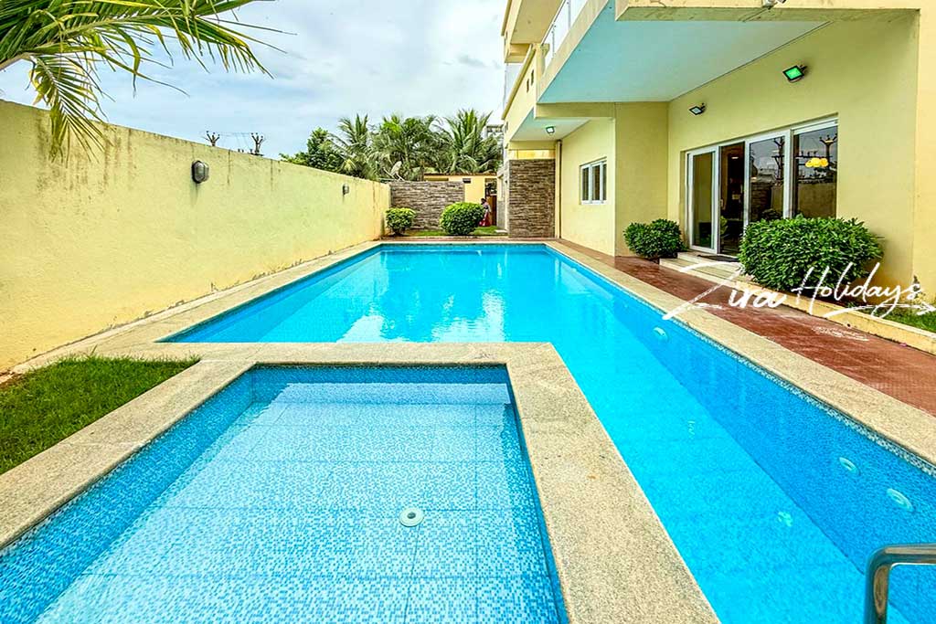 • Your Private Oasis: A highlight of this ECR beach villa is the large, well-maintained private swimming pool, surrounded by a lush garden and deck area—perfect for pool parties, sunbathing, or a quiet evening dip.