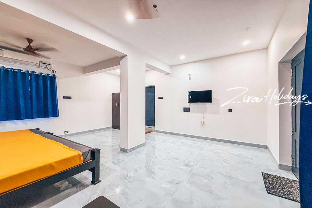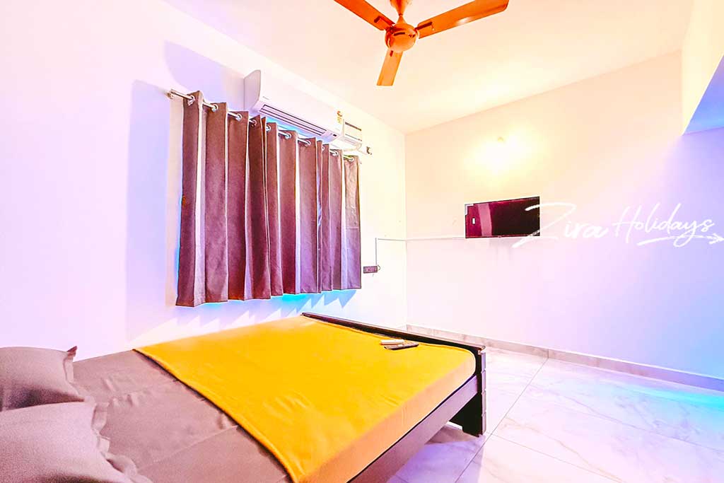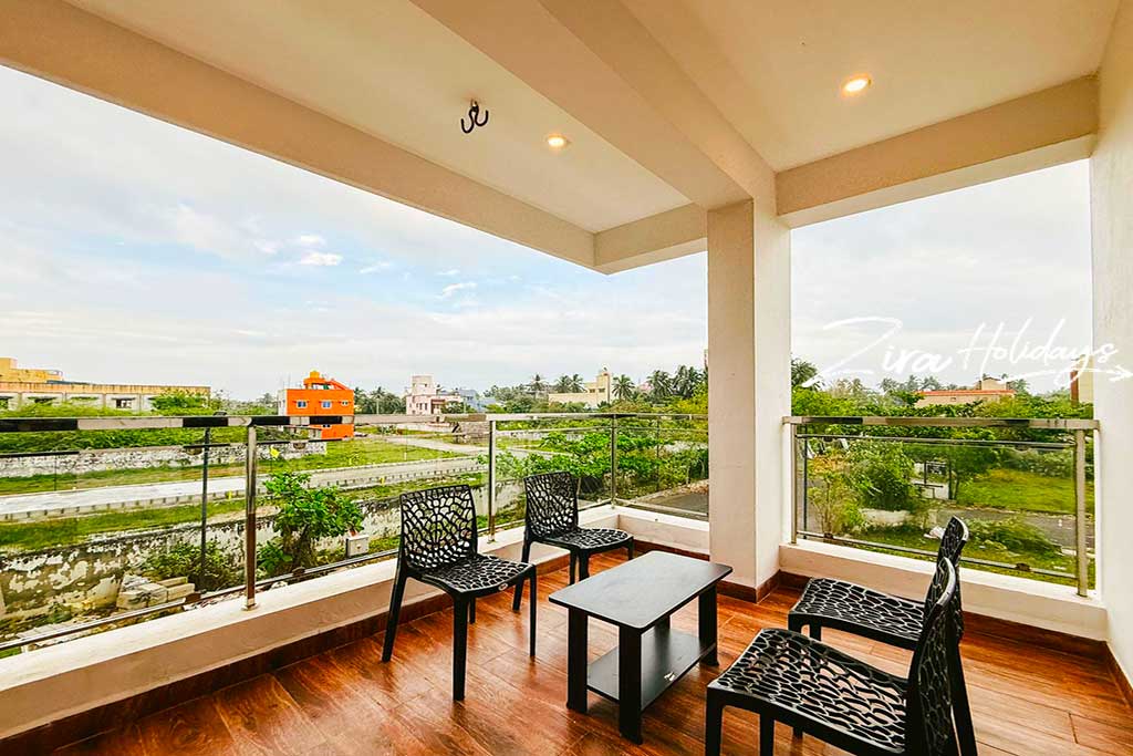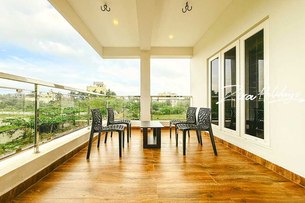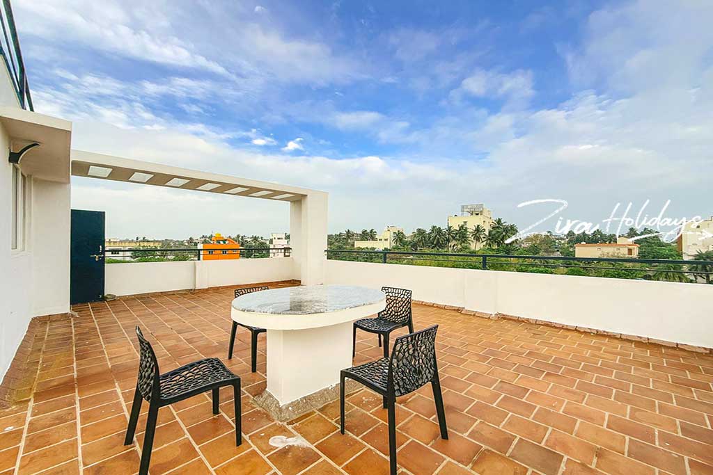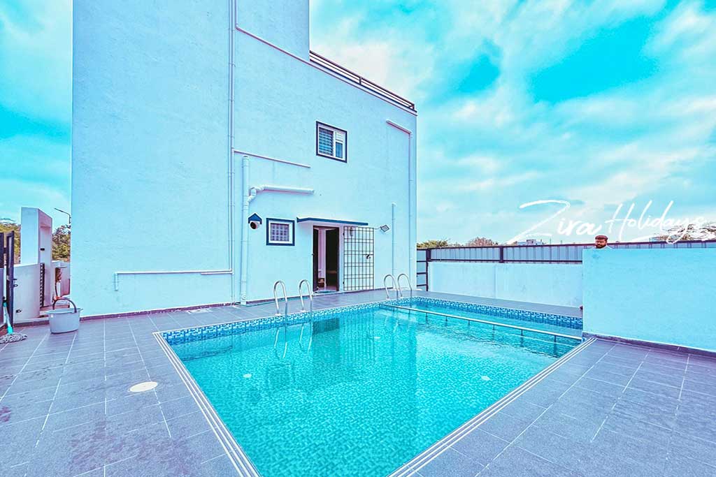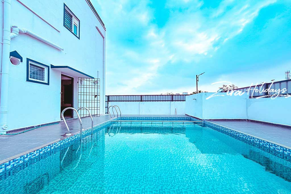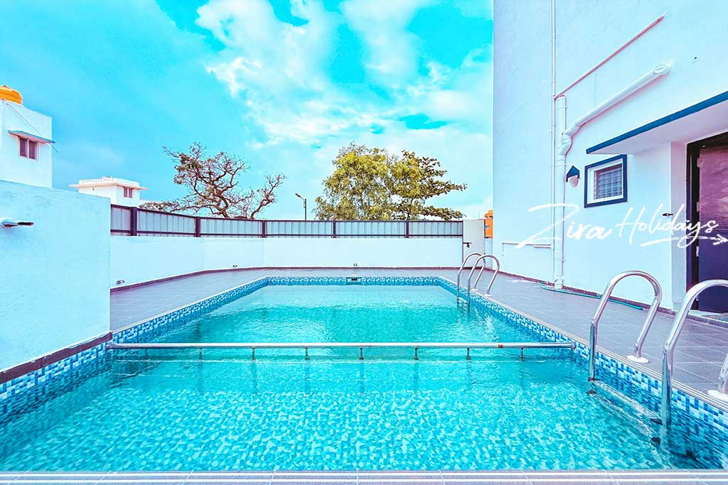 The stay in this individual villa ecr provides access to a living area and a balcony of the property with a modern designed bedrooms with attached restrooms and all basic necessary amenities. The villa has a huge size swimming pool with an outdoor sit-out to enjoy an evening with your loved ones.