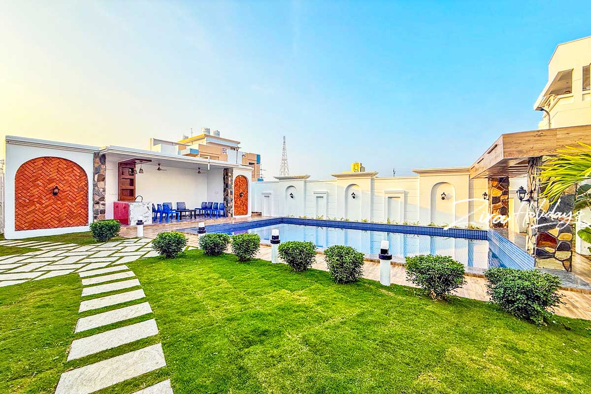 Private Luxury Villa: Features a designer swimming pool with waterfalls and a dedicated kids’ pool.